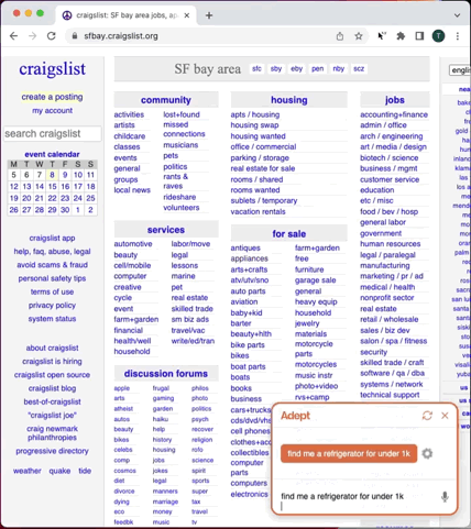研发团队表示,他们是通过将ACT-1连接在一个Chrome扩展程序上,让它来观察浏览器的一些操作,比如点击、输入、滚动等。