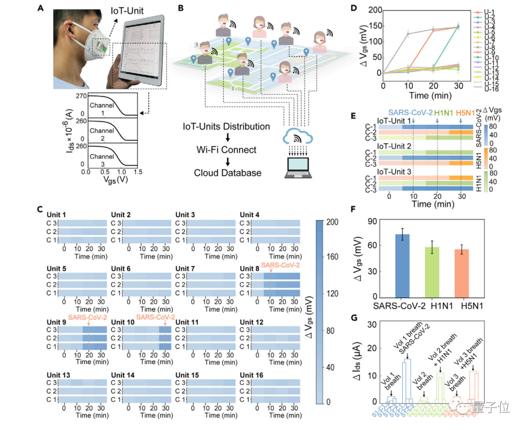 当人们佩戴这样的口罩时,安装在口罩外边的生物电子装置就可以直接分析空气中具备传染性的病毒。