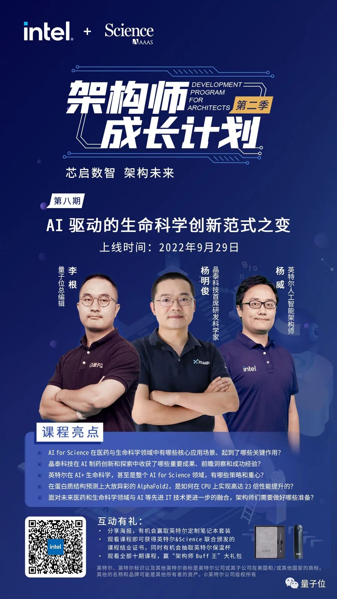 或者观看英特尔联合国际学术期刊《Science》推出的“架构师成长计划”第二季第八期课程《AI驱动的生命科学创新范式之变》。