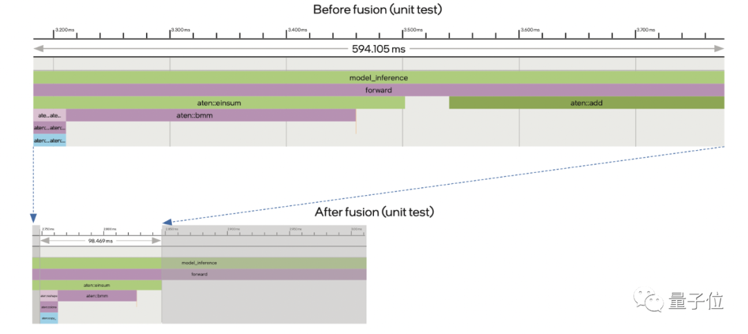因此,英特尔就使用IPEX工具提供的算子融合能力将它俩的计算过程进行融合,以省去中间建立临时缓存数据结构的时间,提高整体效率。