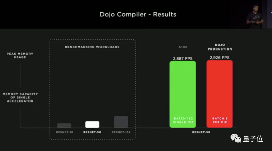 按特斯拉的说法,他们在经典项目RESNET-50上的计算能力击败了A100: