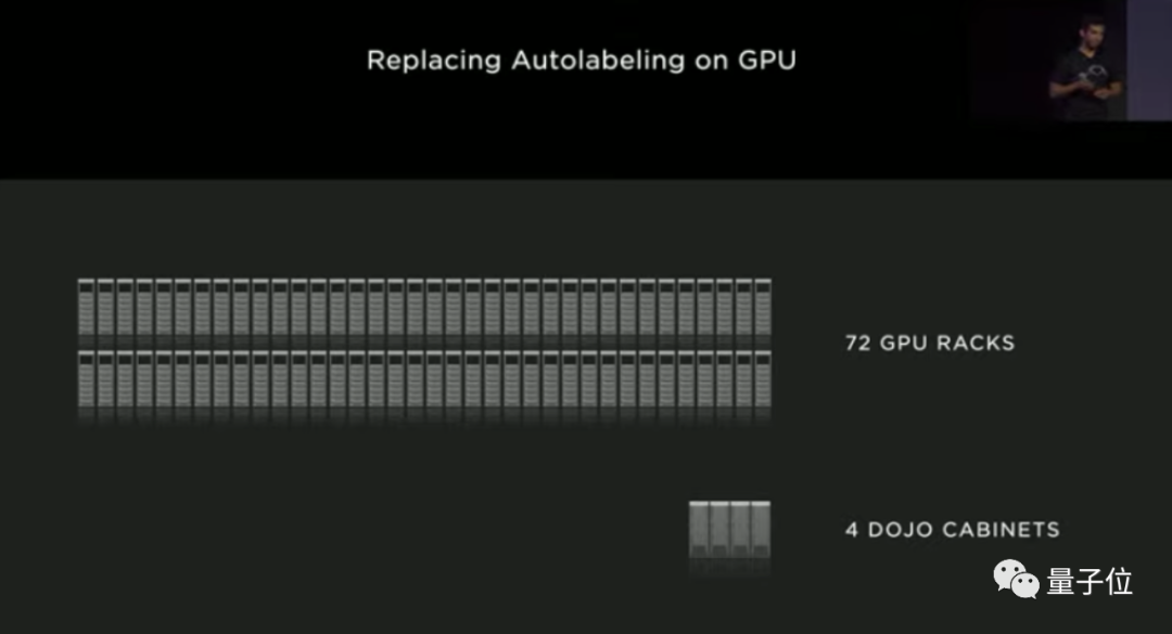 在替代性方面,他们以自动标注为例,宣称4个DOJO机柜可替代72个GPU RACKS: