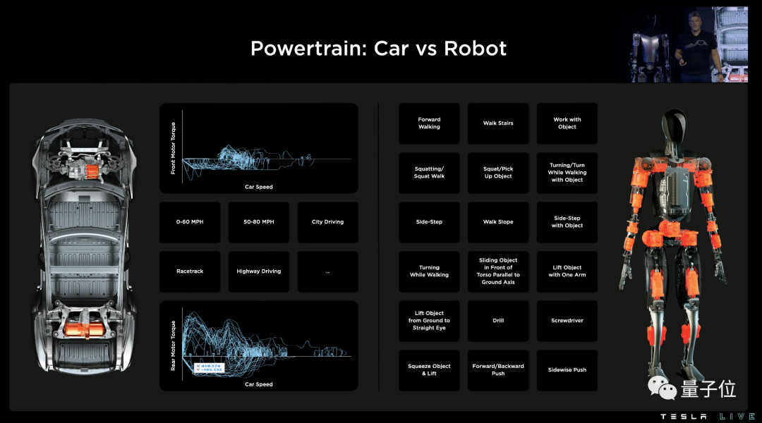 机器人则要完成行走、上台阶、蹲起、转身等更多身体动作,以及从拧螺丝到提重物等多样任务。