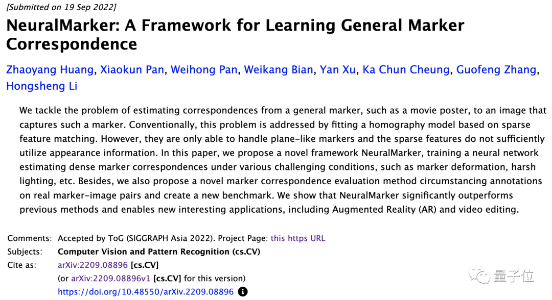 论文地址:https://arxiv.org/abs/2209.08896参考链接:[1]https://drinkingcoder.github.io/publication/neuralmarker/[2]https://drinkingcoder.github.io/publication/life/[3]https://nanonets.com/blog/optical-flow/