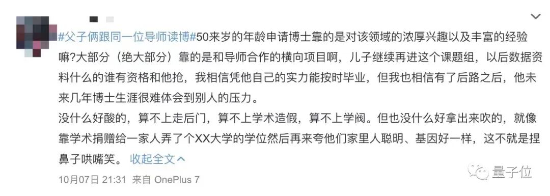 父子俩跟同一位导师读博的事件在网络上引发了热烈讨论。