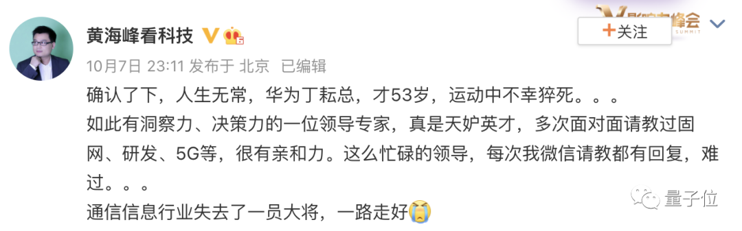 华为高管、最大营收业务的一把手丁耘,因突发疾病,于2022年10月7日凌晨不幸去世,享年53岁。