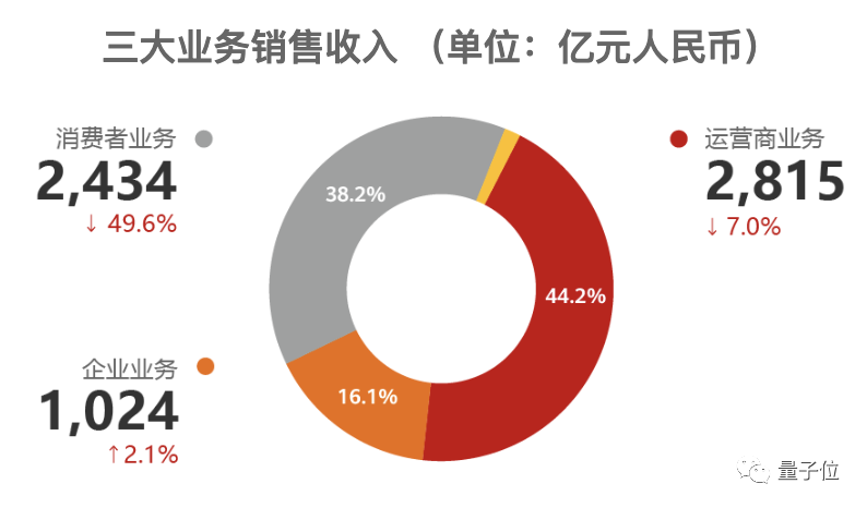 而在2022年上半年,华为运营商业务收入为1427亿元人民币,占总收入的47.3%,在三大业务中继续居首。