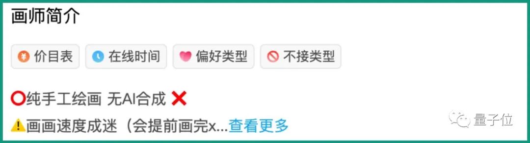 还有画师为了强调自己作画的质量、避免买家担心版权问题,特意在简介中标注“无AI合成”字样,由此来看用AI生成作画的画师也并不少见。