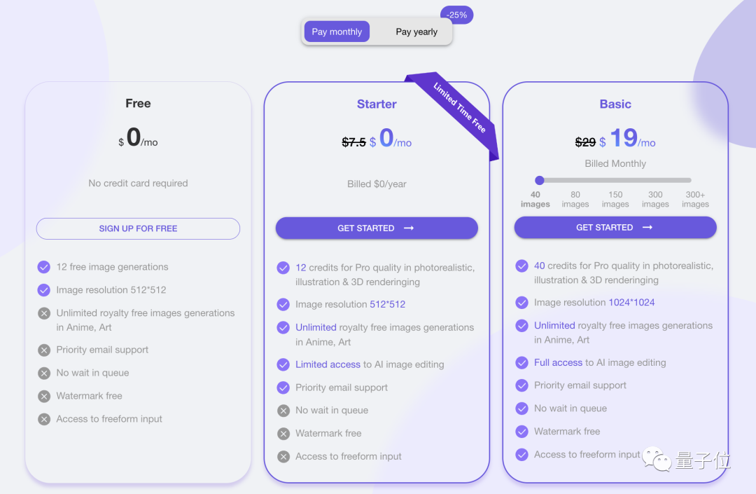 核心产品之一是图像生成器imgcreator.ai,可用文本生成任意图像内容。从官方界面上看到,目前有三种运营模式,免费版、基本版以及新人(Starter)版。