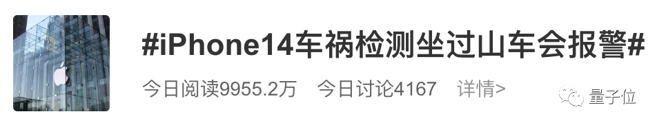 参考链接:[1]https://www.theverge.com/2022/10/9/23395222/iphone-14-calling-911-rollercoasters-apple-crash-detection[2]https://www.wsj.com/articles/the-owner-of-this-iphone-was-in-a-severe-car-crashor-just-on-a-roller-coaster-11665314944[3]https://s.weibo.com/weibo?q=%23iPhone14%E8%BD%A6%E7%A5%B8%E6%A3%80%E6%B5%8B%E5%9D%90%E8%BF%87%E5%B1%B1%E8%BD%A6%E4%BC%9A%E6%8A%A5%E8%AD%A6%23&t=31&band_rank[4]https://www.bilibili.com/video/BV1UB4y1J7fS/?