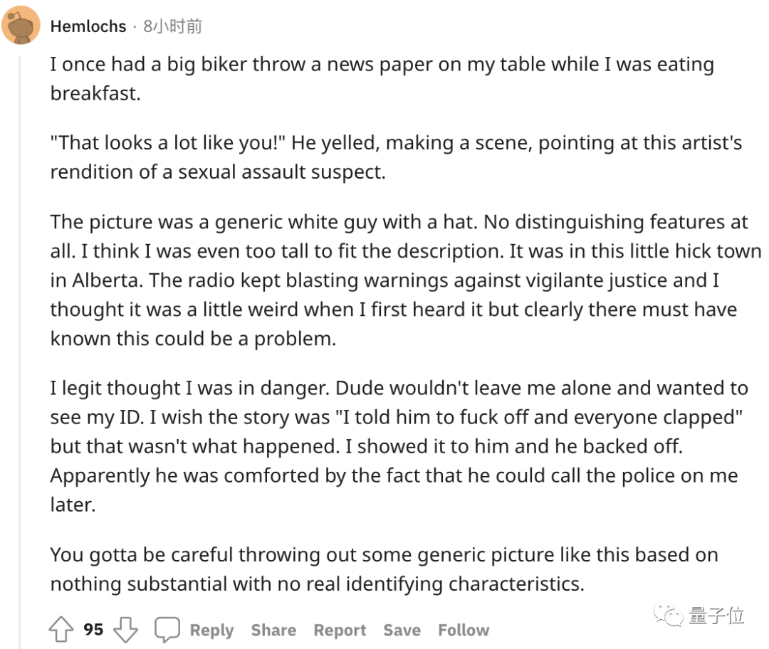 有网友甚至还举了自己因为和通缉令上的头像长得相似,被误认为是嫌疑人的例子,力证这一行为的不靠谱:
