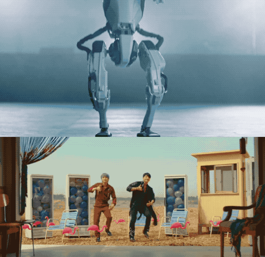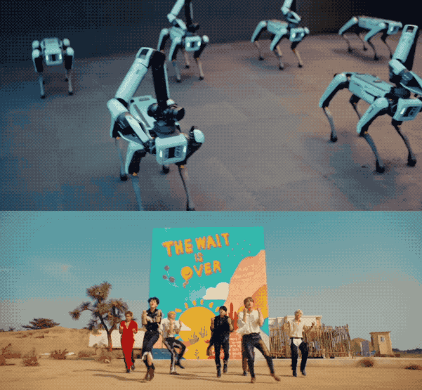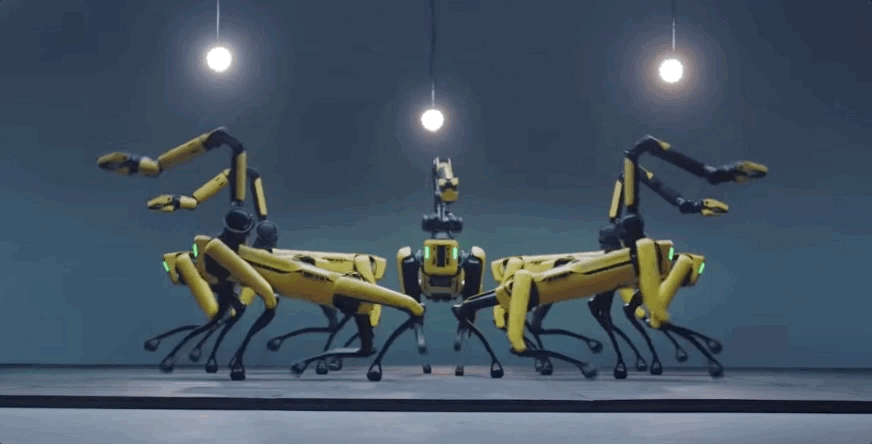 而且不仅是Atlas,Spot的群舞动作也是尽可能地在模仿MV中男团群舞的片段: