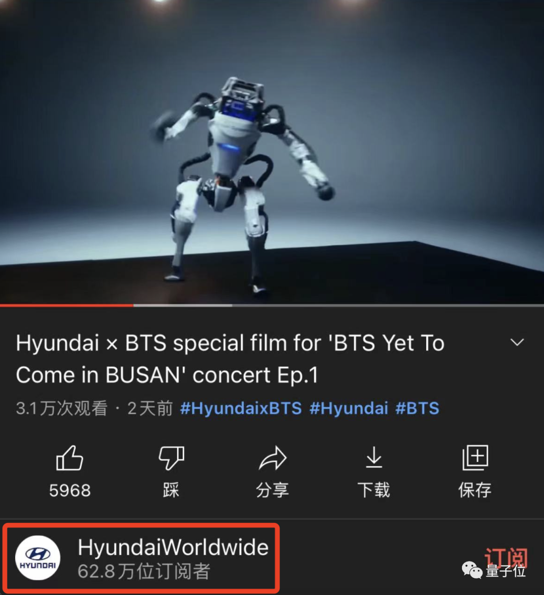 而现代的官方油管也是联动波士顿动力发布了该视频。