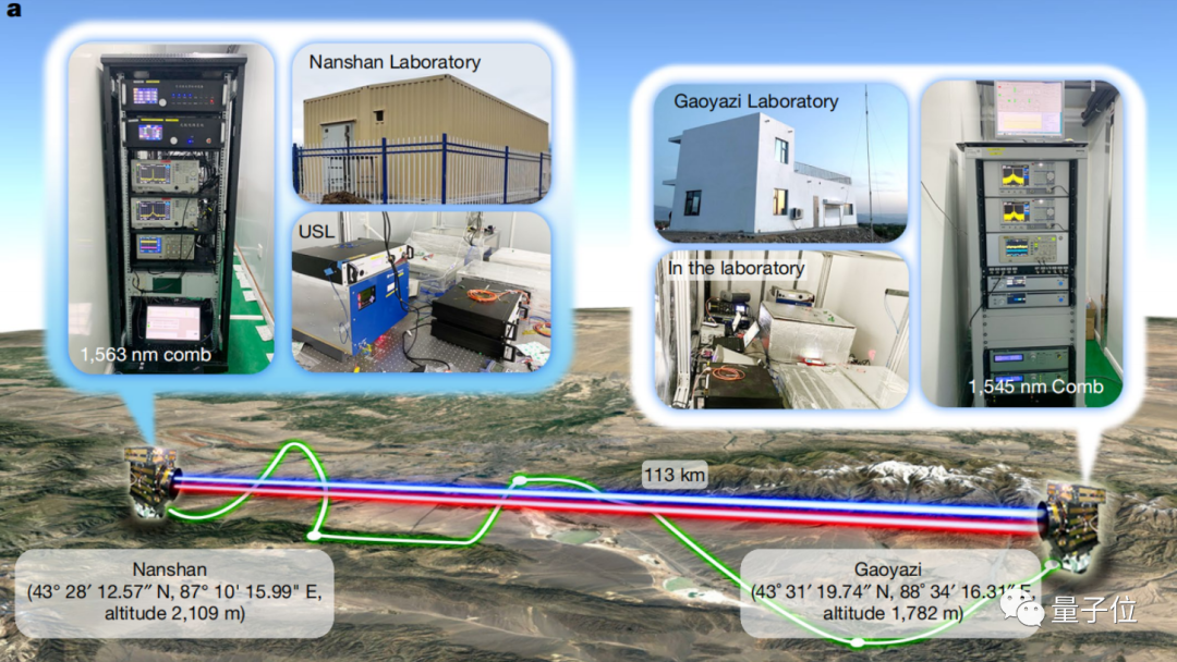 最终,潘建伟团队在相隔113公里的新疆南山天文台和高崖子天文台之间,实现了万秒10-19量级稳定度的时频传递。