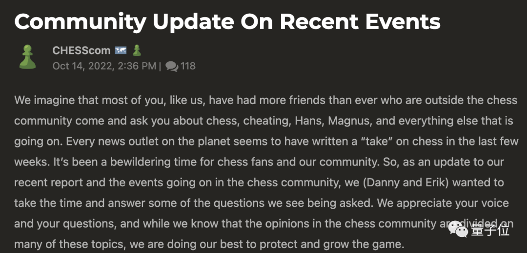 一方面此事一出,立即发布引导性新闻稿,指出尼曼可能在100场在线国际象棋比赛中作弊。