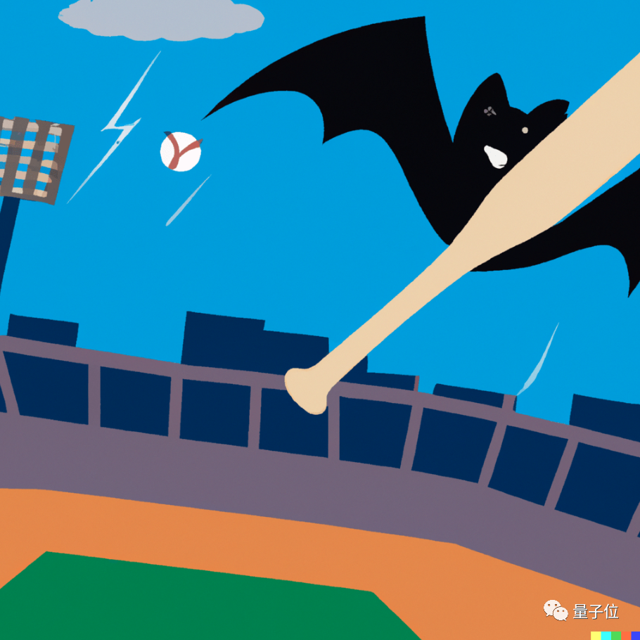 结果它画出来的图,蝙蝠和球拍都在天上飞。