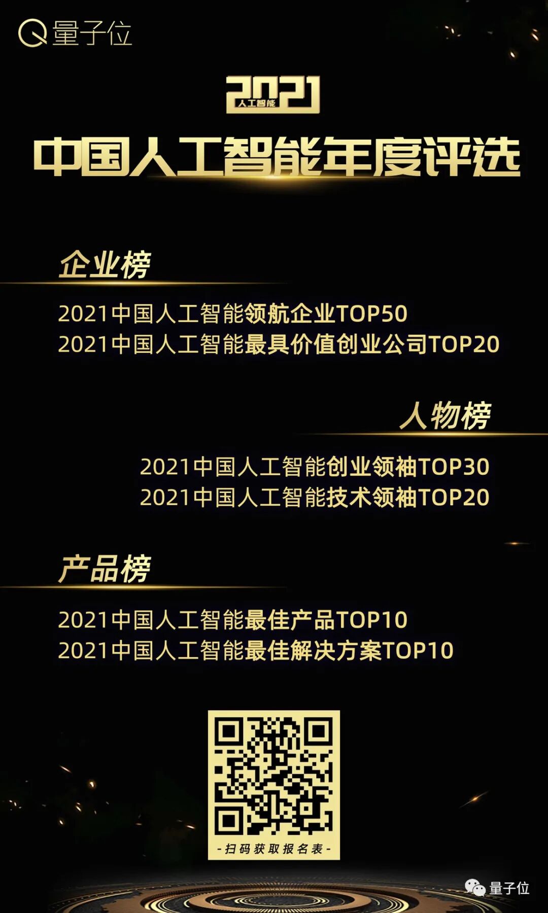 「2021中国人工智能年度评选」报名中!本次评选将从公司、人物、产品三大维度寻找优秀的AI企业,欢迎大家扫码报名参与。评选将于12月揭晓,期待与百万从业者们,共同见证这些优秀企业的荣誉!