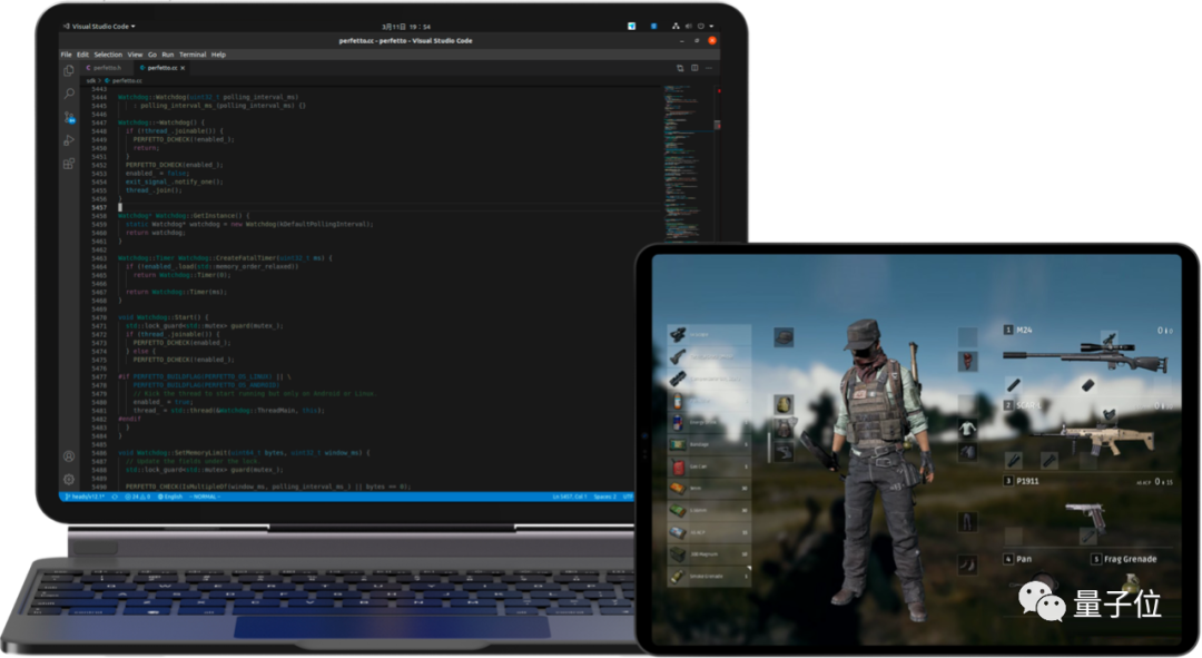 装上键盘可以写代码,拆下键盘能运行游戏。