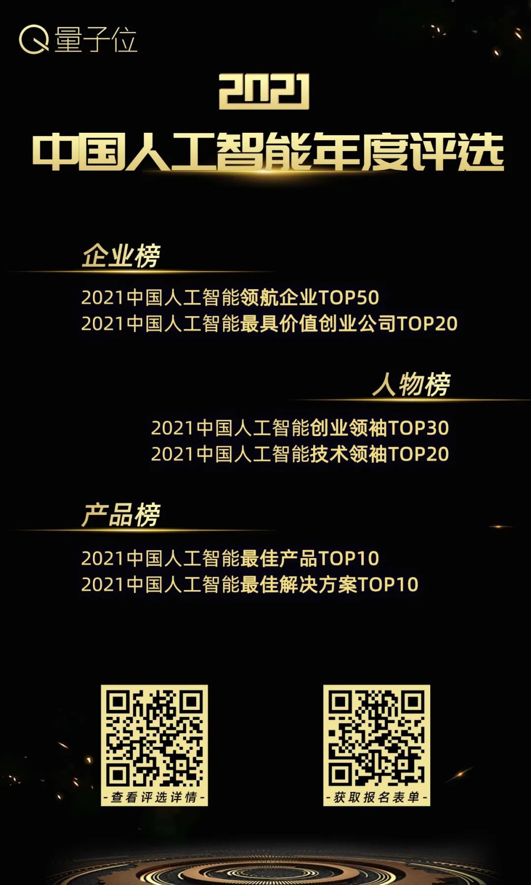「2021中国人工智能年度评选」是由量子位发起的第四届AI年度评选,过去3年,我们发掘并连接了百余家兼具实力、潜能的中国AI公司,也见证他们的发展。在对行业个人、企业真实侧面挖掘中,量子位也与大家一同见证了他们的成长与辉煌。