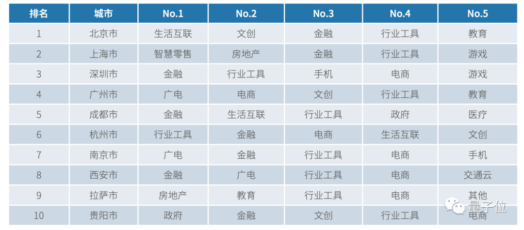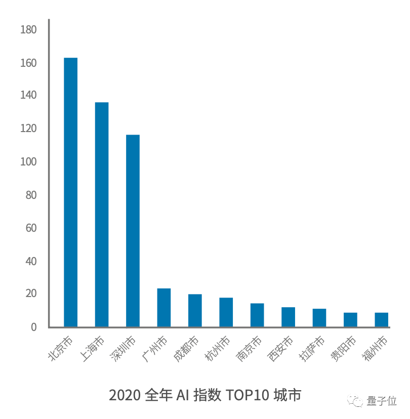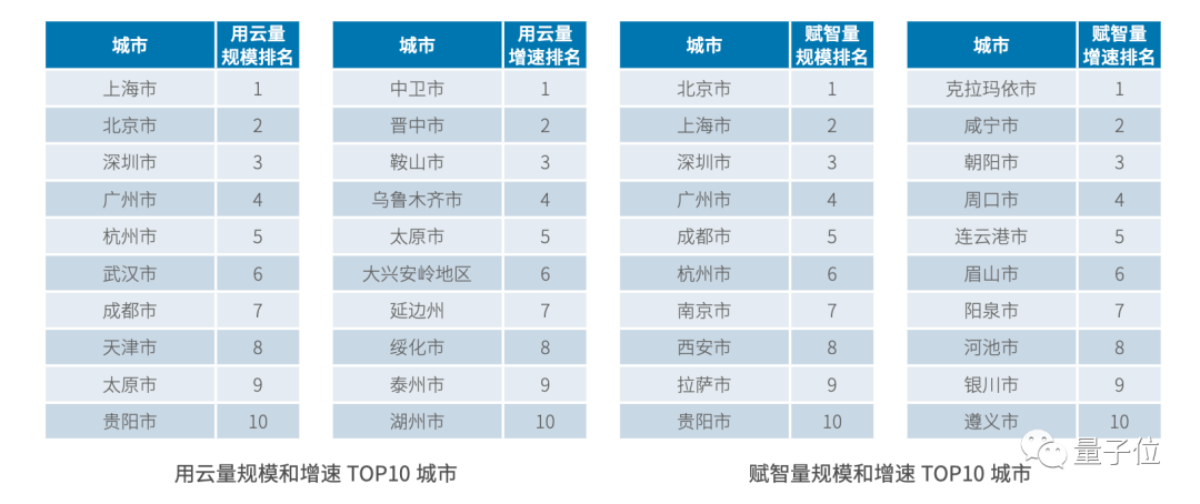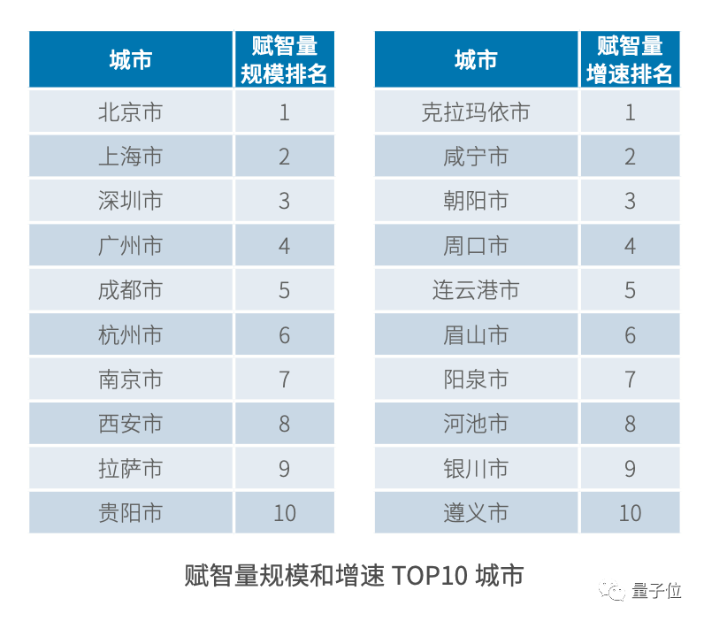 而赋智量维度,排名前十的多为一线、新一线大城市。