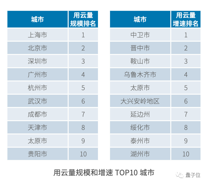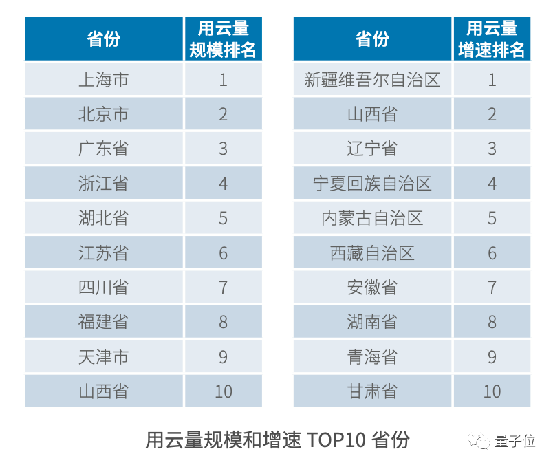 用云量规模和增速的TOP 10省份: