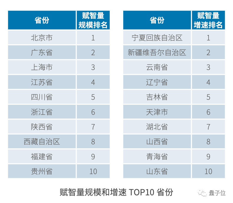 赋智量规模和增速的TOP 10省份: