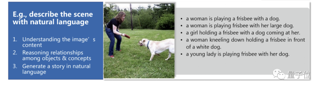 例如在这个模型下,AI在看到下面的这张图片时,便可在识别和理解图像蕴含的丰富语义,并生成准确的语言描述。