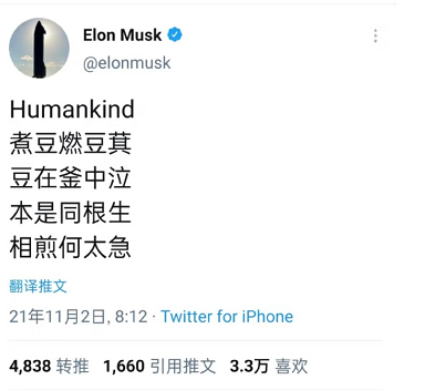 毕竟马斯克是原封不动把这首中文诗发了出去,那该怎么用英语翻译给外国网友呢?