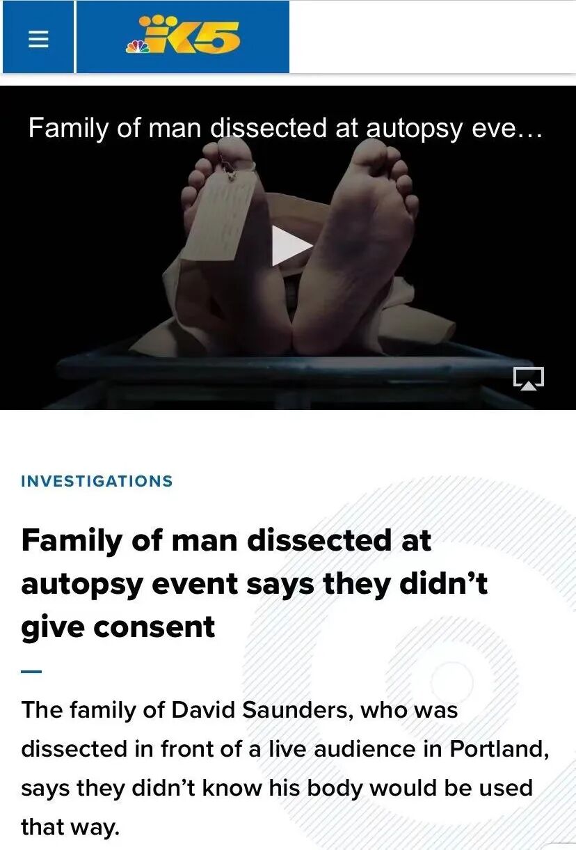 而死者家属对大卫将被直播解剖的事情完全不知情!