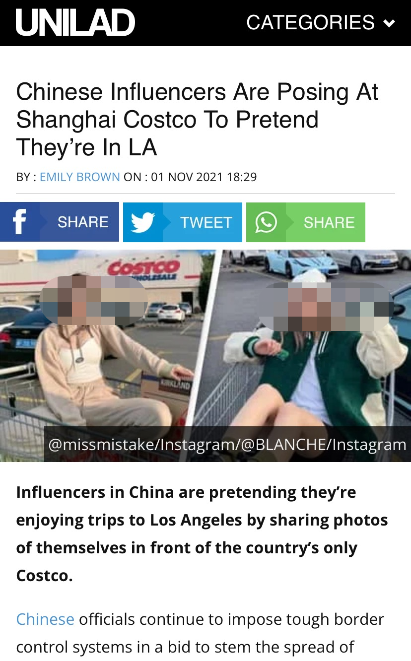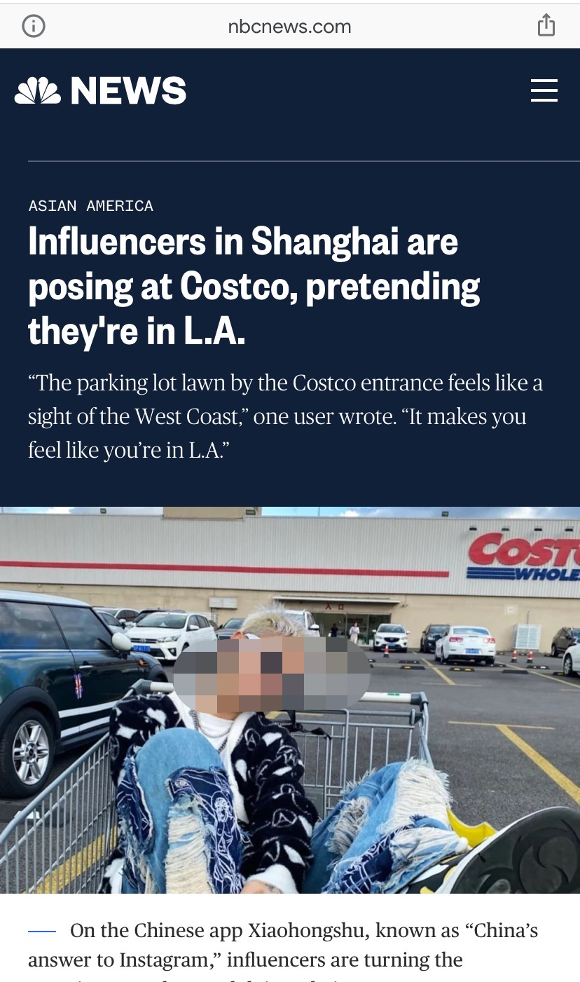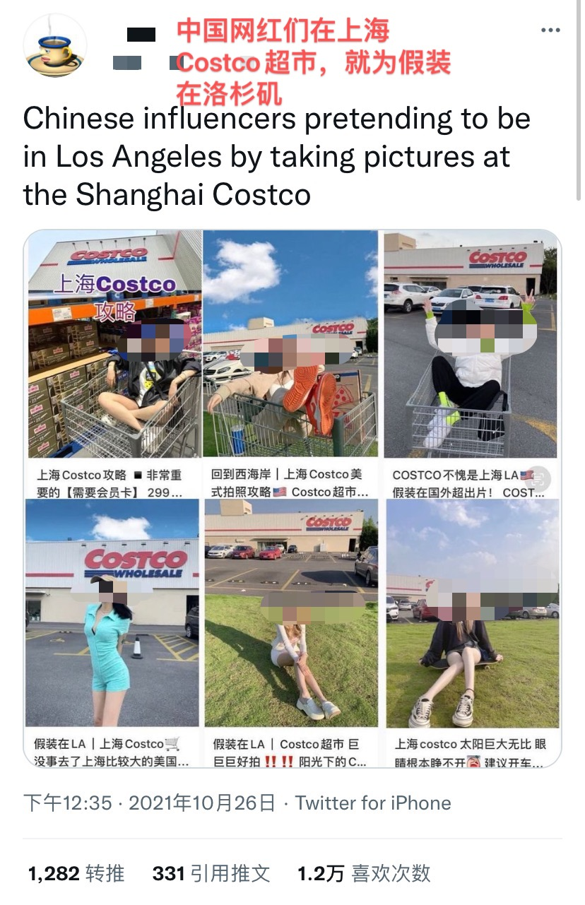 但谁能想到,这件事突然就火到了国外,先是有外国网友把这些网红们的照片发在外国的社交平台上,还附上了“中国网红们在上海超市拍照,就为了假装在洛杉矶”的文字。