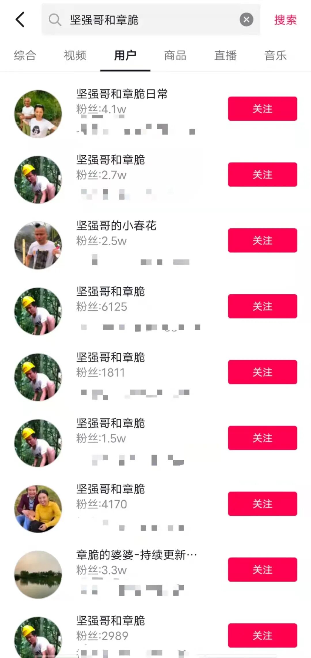 目前这个账号已经被火速注销,平台上搜到的同名账号,都是网友们自己开设拿来留存“坚强哥和章脆”早期视频的。