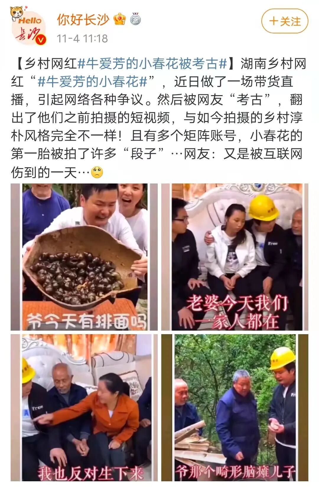 甚至还有,家人是请的演员、鸡鸭牛羊是买的、夫妻二人长沙七套房开路虎车等网传消息。