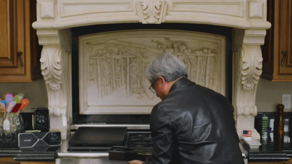 以前都调侃英伟达的显卡越来越像煤气灶,好家伙,现在官方直接把场景搭在厨房里。