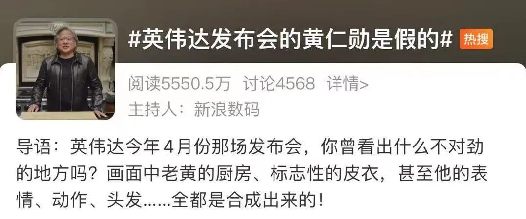 对此英伟达官方亲自回应,今年4月一场发布会上的CEO黄仁勋以及背景都是“假的”。