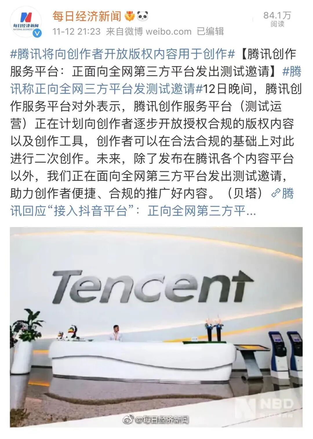 “未来,内容除了发布在腾讯各个平台之外,正在面向全网第三方平台发出测试邀请,助力创作者便捷、合规推广好内容。”