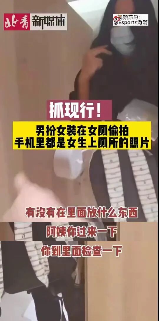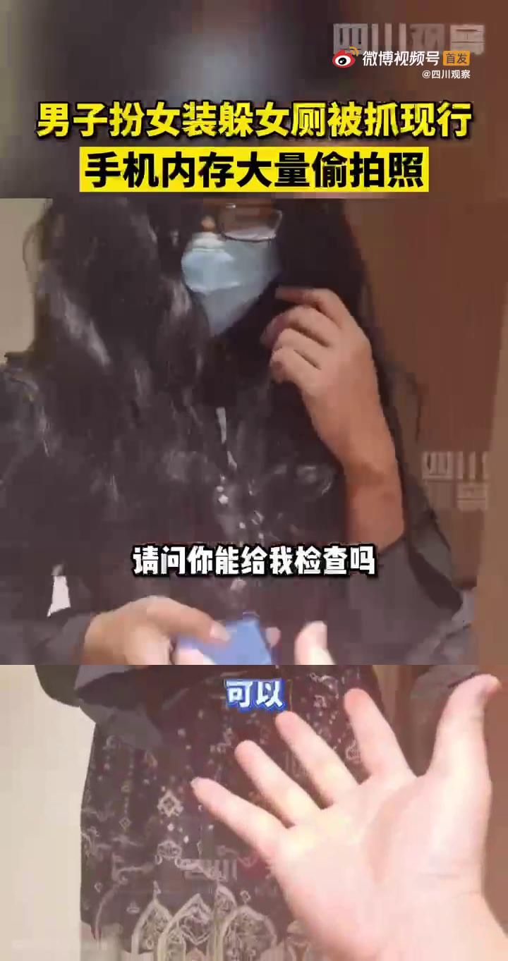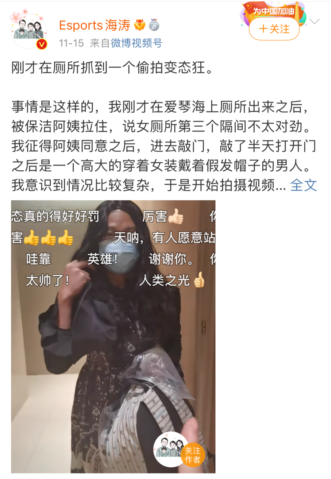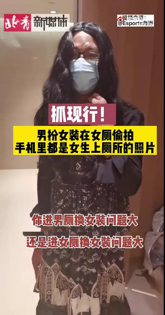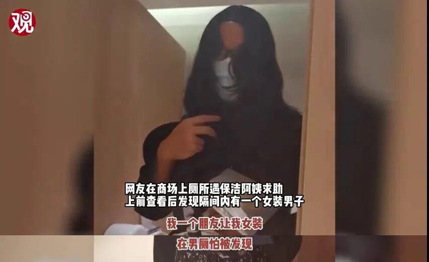 11月15日晚上,博主@Esports海涛 发视频称在上海某商场的女厕所发现一穿着女装、戴着假发的变态偷拍狂。