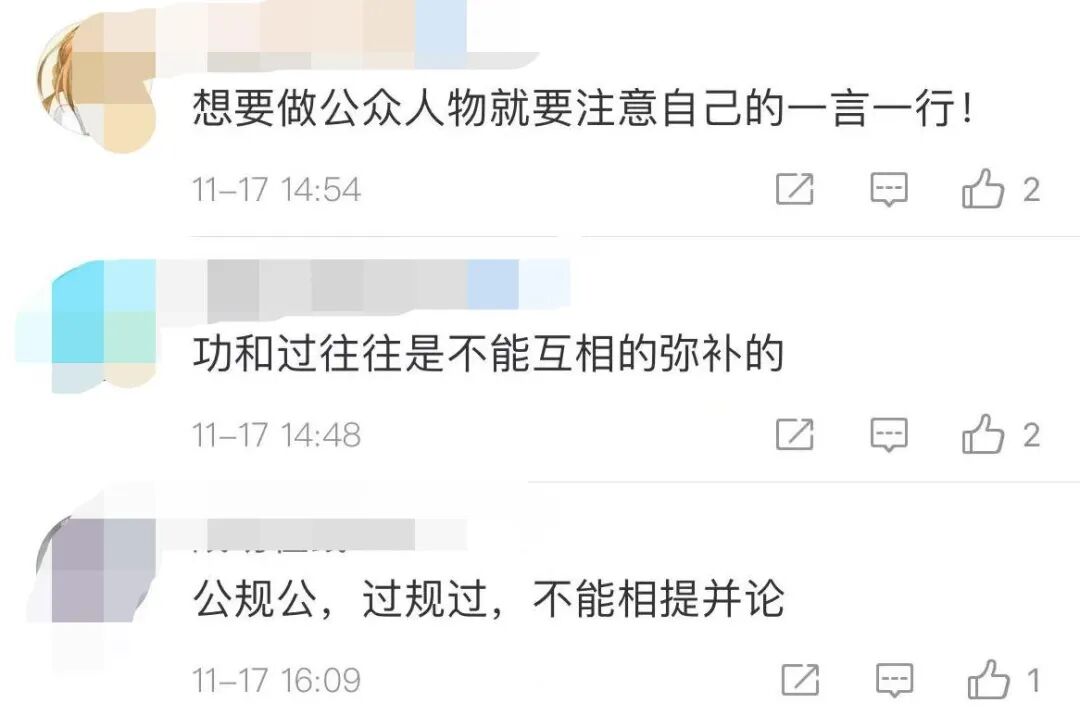 还有人觉得,做公众人物要注意自己的一言一行,公归公,过归过,不能相提并论。