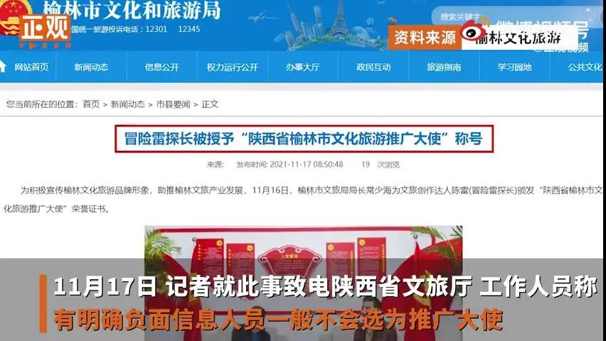 对此,榆林市文化和旅游局表示,“冒险雷探长”确实为当地文旅事业的宣传取得了成绩。