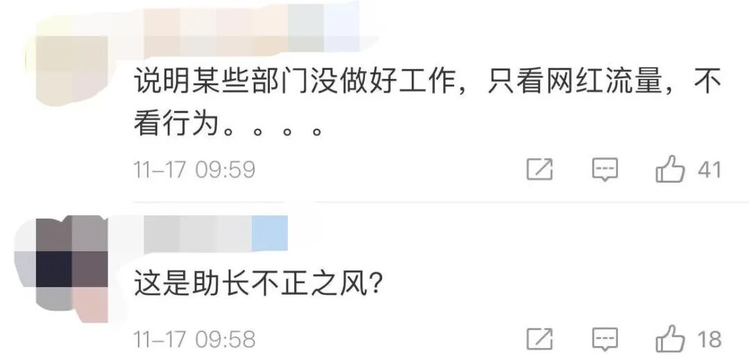 不少网友质疑只看网红流量不看行为太讽刺。