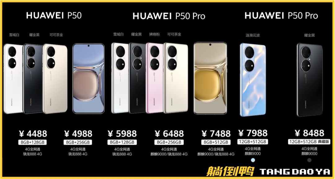当然了,不管是麒麟芯片还是高通芯片,这会的P50系列搭载的都是4G版——按余承东的话说:“5G芯片只能当4G使用”。