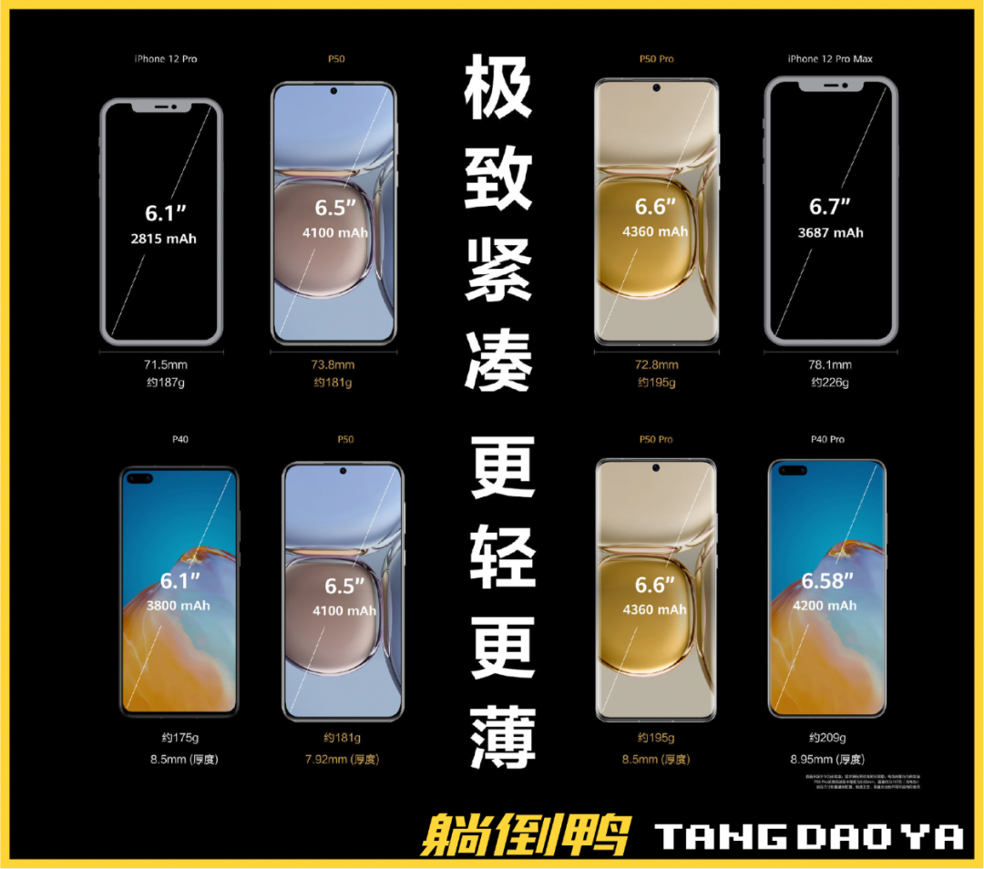 对比友商12 Pro/Pro Max,P50/P50 Pro更紧凑,电池也大“亿点点”