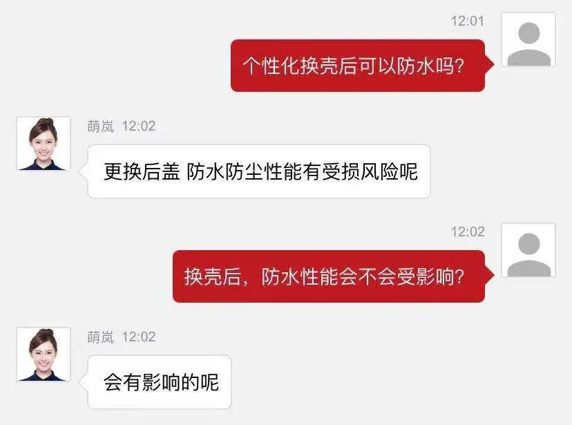 不过,换壳之后,据官方客服介绍,手机的防水防尘性能可能会受到影响。