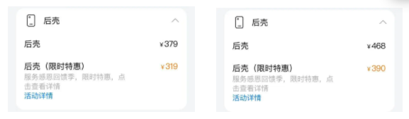 我简单查了几款机型发现,Mate 40的换壳价格在限时特惠后显示为290元。