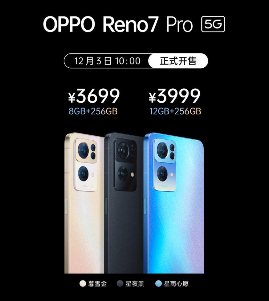 OPPO Reno7 Pro搭载天玑1200 Max芯片,起售价为3699元