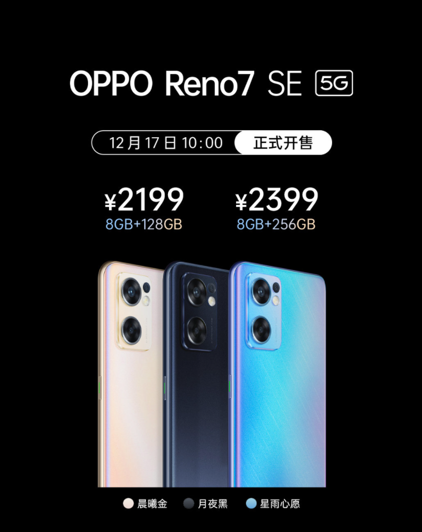 OPPO Reno7 SE搭载天玑900芯片,起售价为2199元;