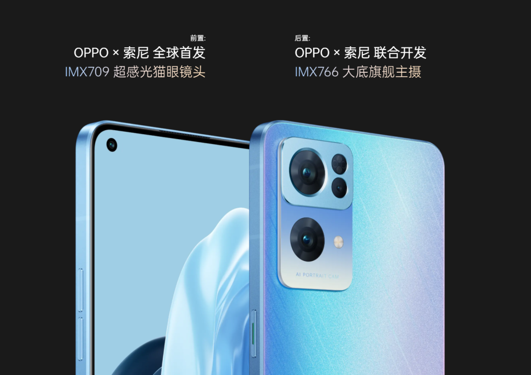 OPPO Reno7系列全球首发了与索尼联合研发的IMX709前置猫眼镜头,传感器上集成了 OPPO 自研的 RGBW 图像融合单元。