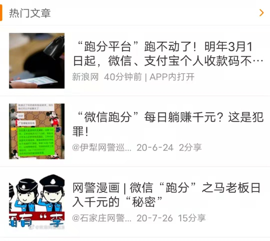 比如网上前段时间很火、具有诱惑性的“微信跑分”。