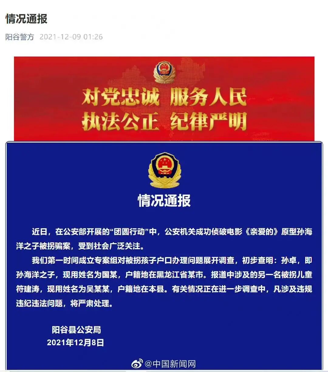 今天凌晨,山东阳谷警方发布通报,被拐儿童孙卓户籍地在黑龙江,符建涛在本县,正进一步调查。