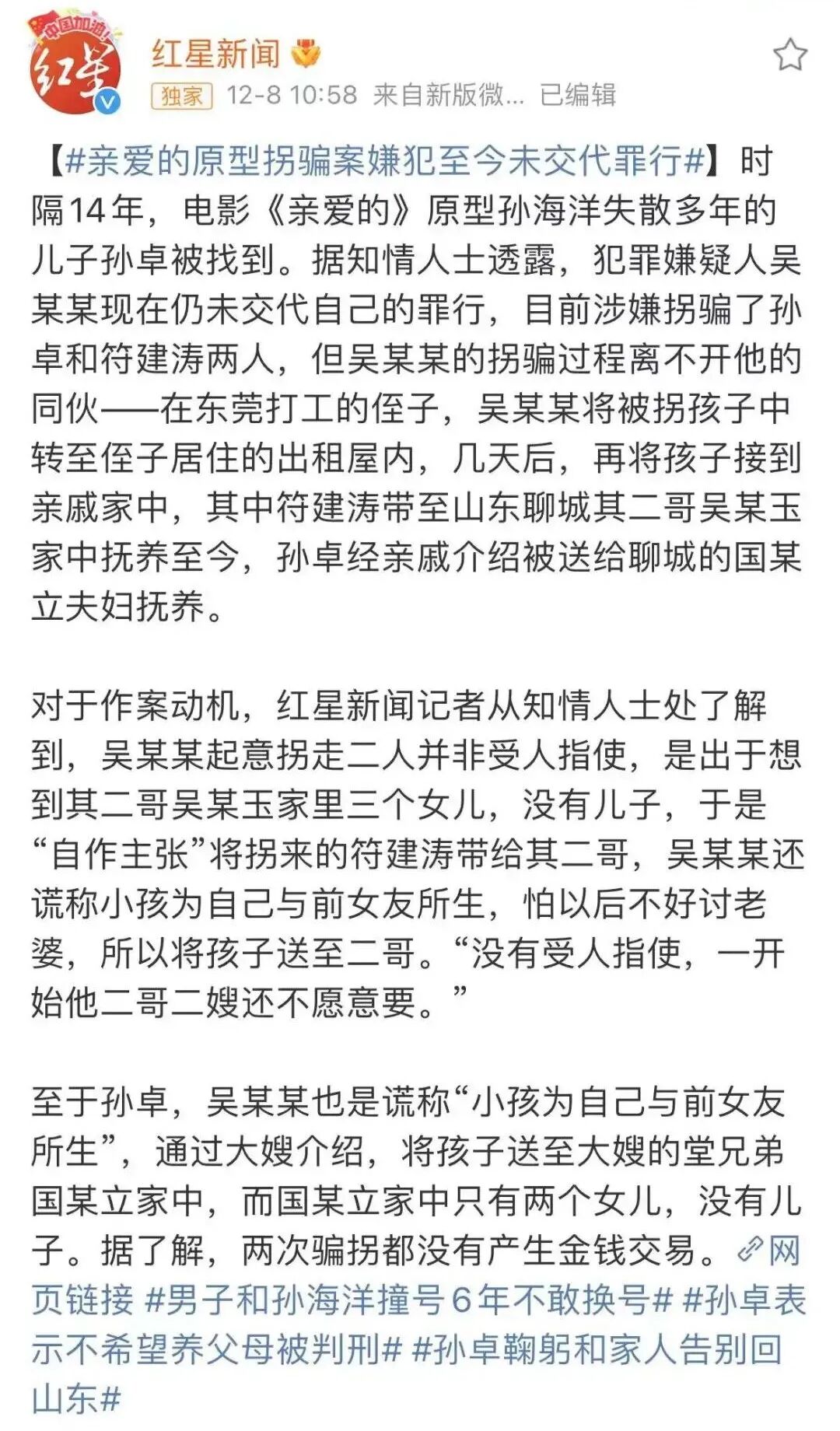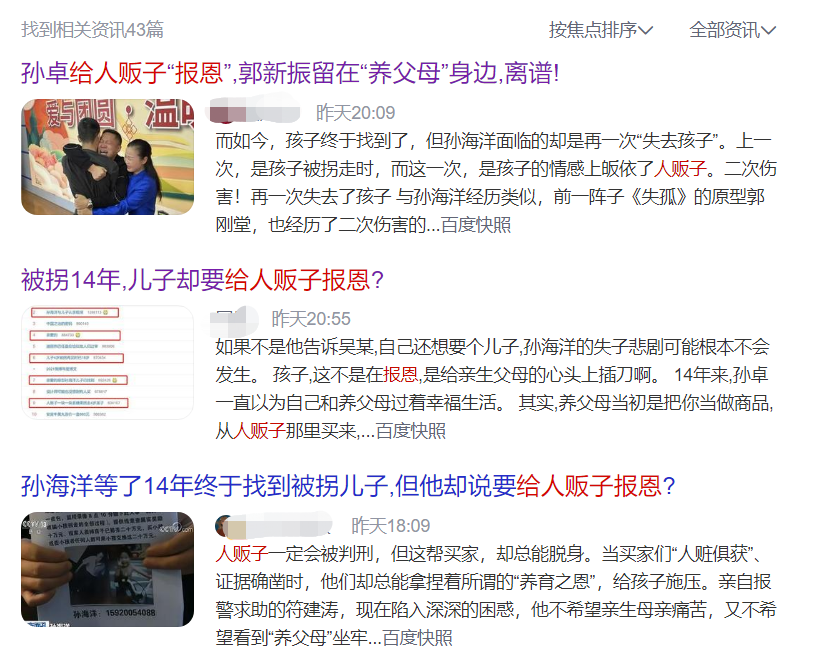 但一些不良媒体却开始抨击孙卓,说他是给“人贩子报恩”。