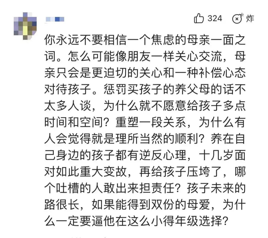 甚至有人攻击夏先菊,说这是她的一面之词,一个焦虑的母亲不可能“像朋友一样关心交流”,“如果能得到双份的母爱,为什么一定要逼他在这么小年纪选择?”